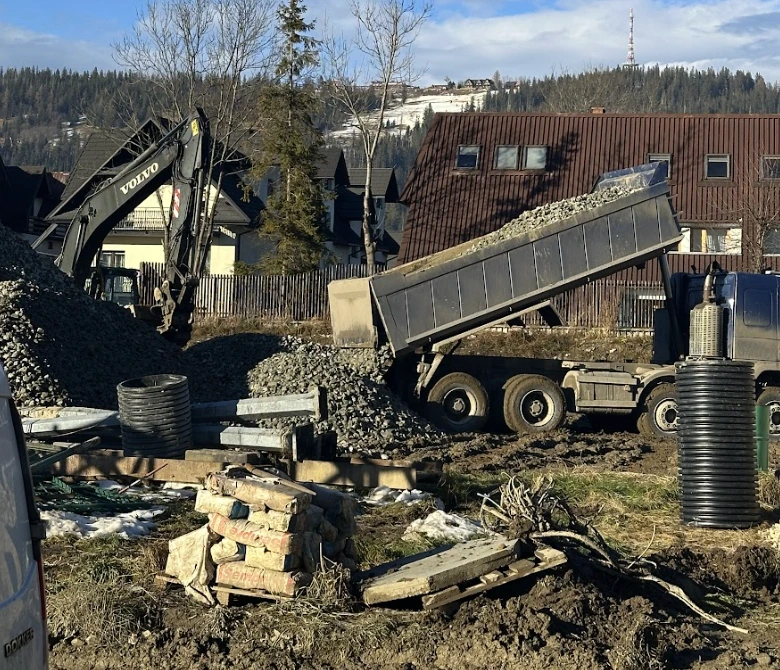 - Wykopy i instalacje wodne: Wykonaliśmy wykop pod kanalizację deszczową oraz zamontowaliśmy zbiorniki retencyjne, które zapewnią efektywne odprowadzanie wody.